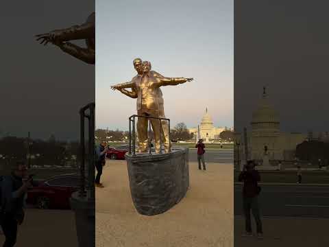 Footage shows statue erected on Tuesday, March 10 of US President Trump and late sex offender Jeffrey Epstein mimicking famous Titanic scene where Jack Dawson embraces Rose DeWitt Buckater. The statue was erected near the US Capitol, facing the Washington Monument.
