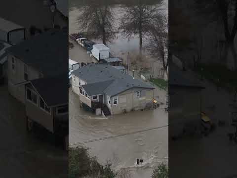 Drone footage captured shows flooding in Washington, as an atmospheric river brought severe storms and rising rivers to the region. Homes and vehicles could be seen partially submerged by flooding from both the Wallace and Puyallup Rivers.
