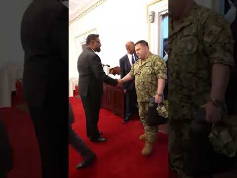Noem and Lewandowski sat side-by-side across from Guyanese President Irfaan Ali during a meeting in the South American country on Tuesday.