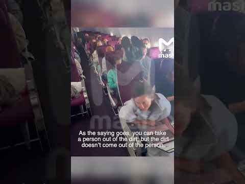 A female passenger is being accused of a “pedi crime” after using her fellow flyer’s seat as a footrest on a Qatar Airways flight, as seen in an appalling video taking off online.