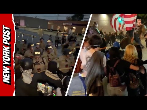Protests turned chaotic in Chicago and Los Angeles this weekend as demonstrators clashed with police following dispersal orders. Outside the Broadview ICE facility in Illinois, officers declared the gathering an unlawful assembly, advancing on protesters with batons and making four arrests. In Los Angeles, the LAPD said agitators from the “No Kings” protest used lasers and flashing lights against officers and a police helicopter before mounted units dispersed the crowd.