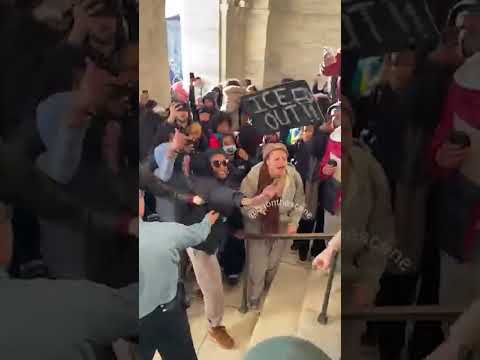 Video shows a scuffle breaking out at the Minnesota State Capitol during a student-led anti-ICE protest on January 14. Footage captures building security intervening as tensions flared during the demonstration, which drew hundreds of students who walked out of class to protest the presence of federal immigration agents in the state.