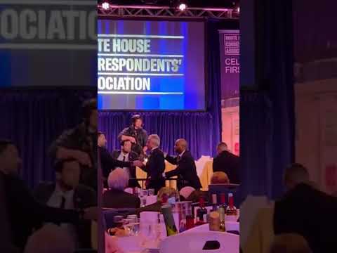Secretary of Health and Human Services Robert F. Kennedy Jr. is rushed out by Secret Service agents after shots were fired outside the ballroom of the White House Correspondents’ Dinner.