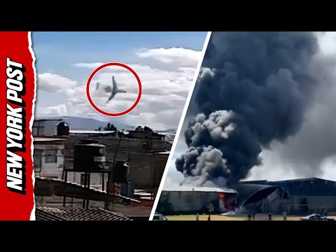 Shocking footage captured the moment an out-of-control private jet plunged toward the ground in a fiery crash near Mexico’s Toluca Airport, killing all 10 people onboard — including three young children.